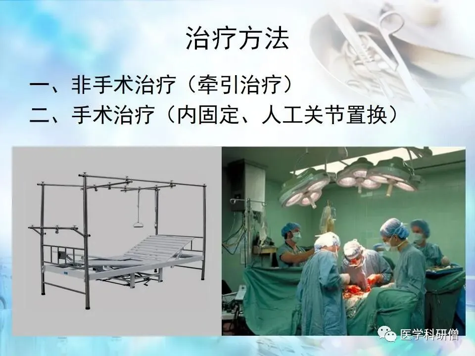 股骨转子间骨折的治疗方法主要包括非手术治疗和手术治疗两种。非手术治疗适用于稳定性好、移位不明显的骨折,如部分I型骨折,可通过卧床休息、牵引、支具固定等保守治疗措施促进骨折愈合。而手术治疗则适用于稳定性差、移位明显的骨折,如III型、IV型及部分II型骨折,通过手术复位、内固定等方法恢复骨折端的解剖关系,促进骨折愈合。
