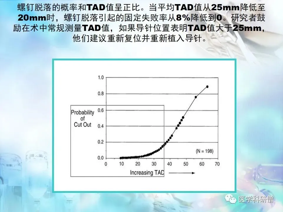 研究表明,TAD与螺钉脱落的风险密切相关。当TAD过大时,内固定物的稳定性会受到影响,螺钉脱落的风险增加;而当TAD过小时,虽然内固定物的稳定性较好,但可能会对周围组织造成过多的压迫和损伤。因此,在手术过程中,医生需要严格控制TAD的大小,以确保内固定物的稳定性和治疗效果。