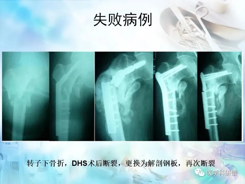内固定系统的强度是影响股骨转子间骨折治疗效果的重要因素之一。影响内固定系统强度的因素主要包括内固定物的材料、设计、植入位置以及骨折端的稳定性等。优质的内固定材料应具有良好的生物相容性、耐腐蚀性和足够的强度;合理的设计应能够符合人体工学原理,适应骨折端的形态变化;准确的植入位置能够确保内固定物与骨折端紧密贴合,提高固定效果;而骨折端的稳定性则是内固定系统发挥作用的前提和基础。