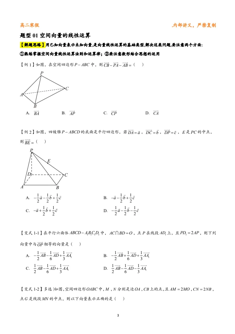 2026版高二数学寒假培优复习讲义word版和PDF版