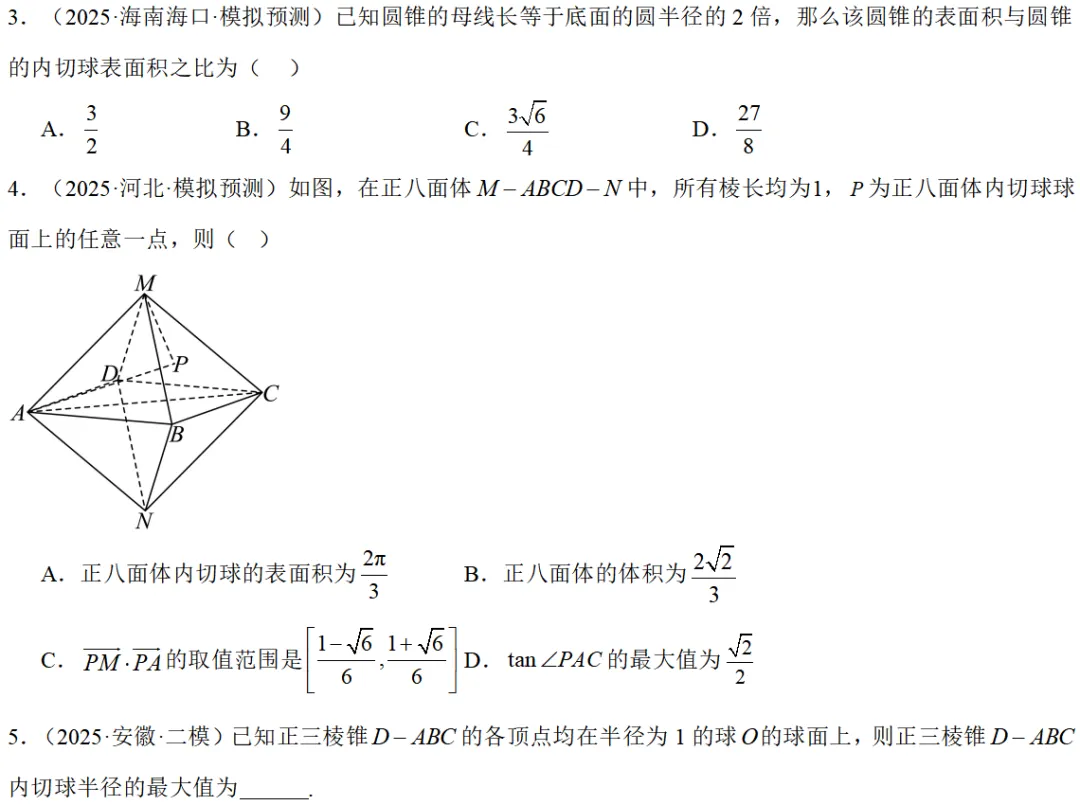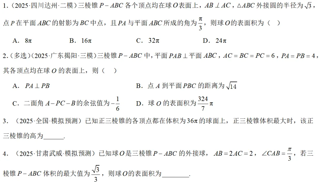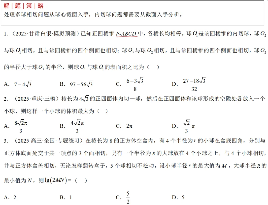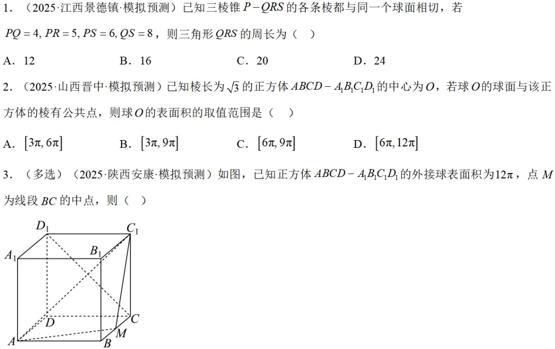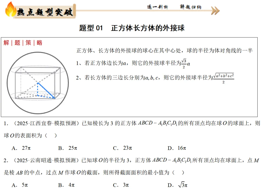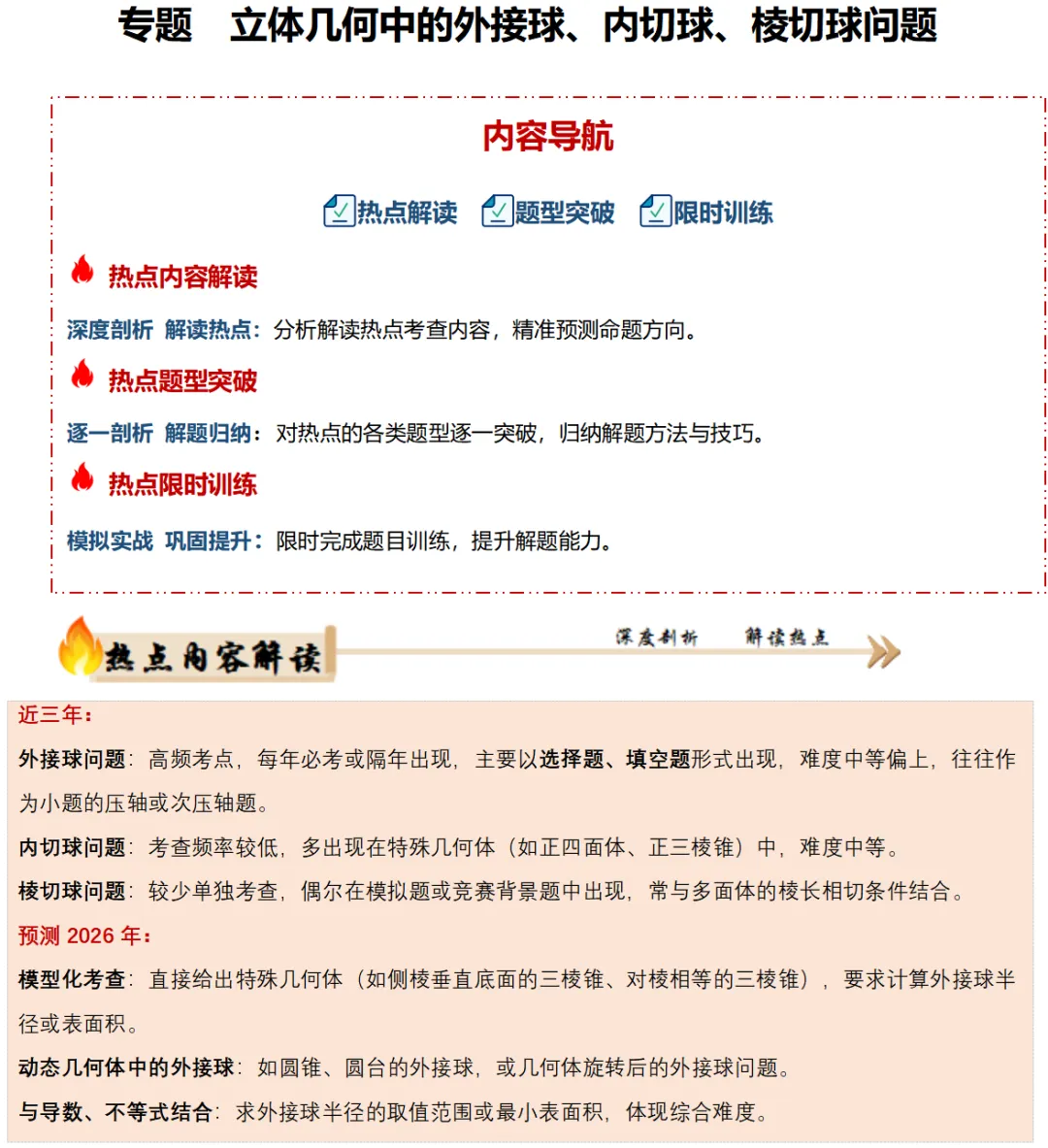 >2026年高考数学二轮培优讲义|立体几何中的外接球、内切球、棱切球问题