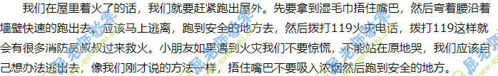 教师:如果着火了怎么办呀?在屋里着火了要怎么做呢?我们应该怎样跑出去呢?