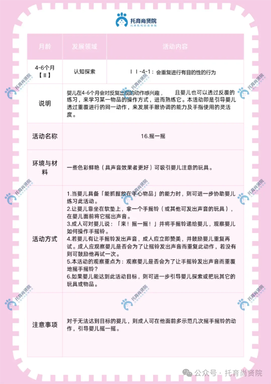 ②乳儿班活动案例,含月龄、发展领域、活动内容、说明、活动名称、环境与材料、活动方式、注意事项等。供参考。