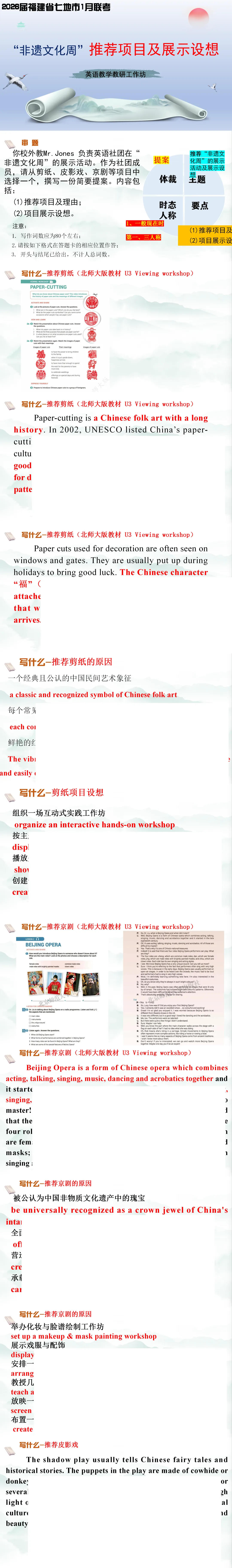 今日分享:【应用文课件】2026届福建省七地市1月联考:非遗文化周”推荐项目及展示设想