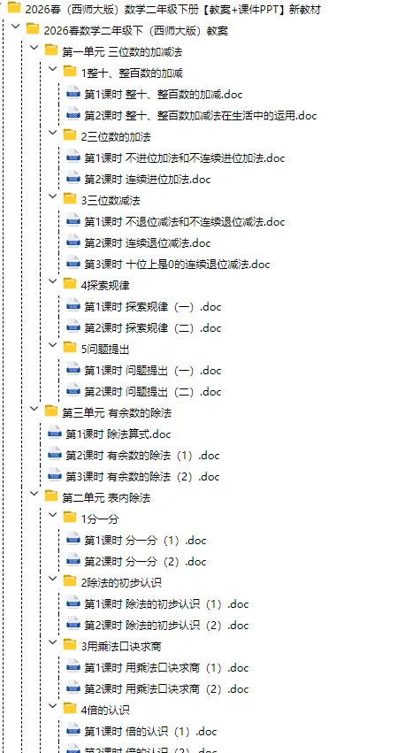 当前位置:首页>教案>2026春数学二年级下册 教案+课件PPT(西师大版),可下载打印!