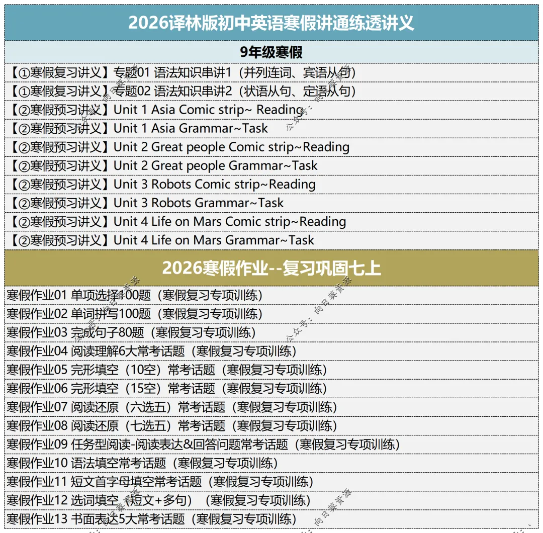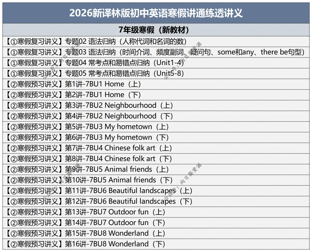 小编今日分享:2026译林版初中英语寒假讲通练透讲义