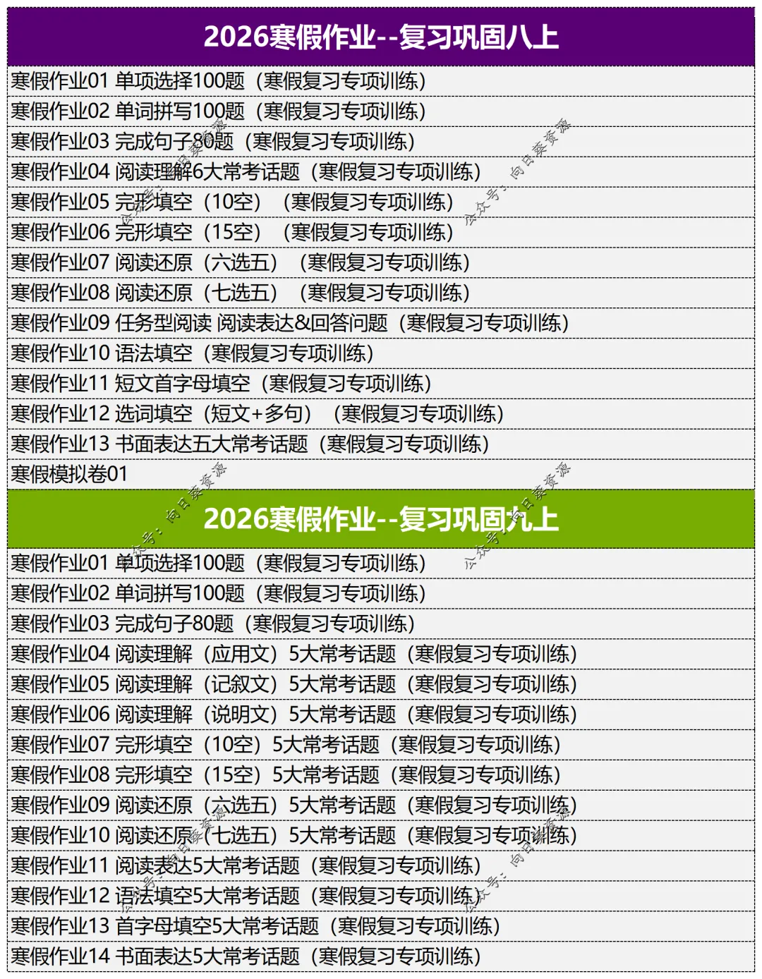【3】2026九年级寒假复习2专题+预习U1-U4,预习九下整本。预习讲义内含:重点短语、语法精讲、知识梳理、例题精讲、课堂练习、课堂小结、课后作业。