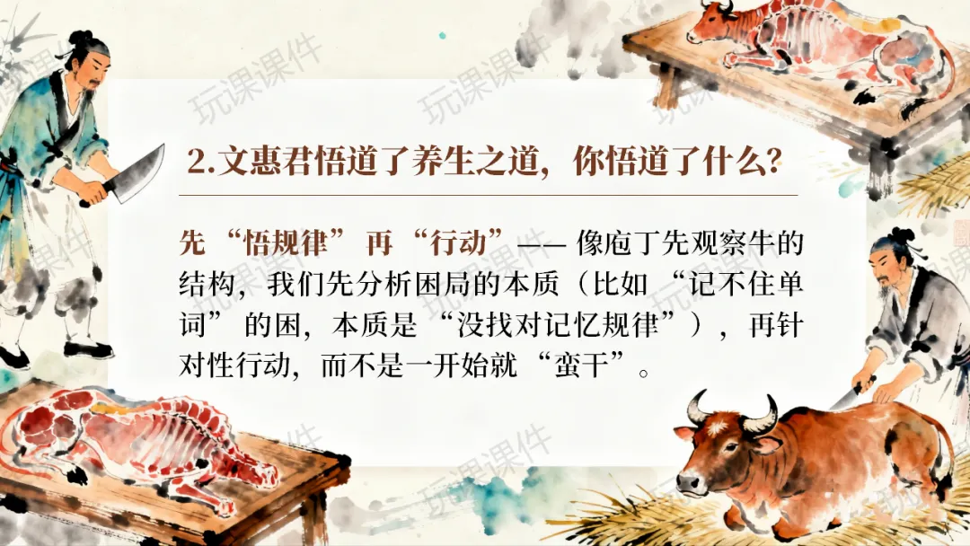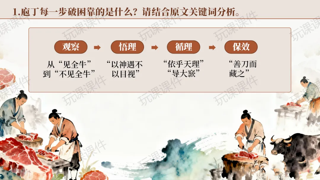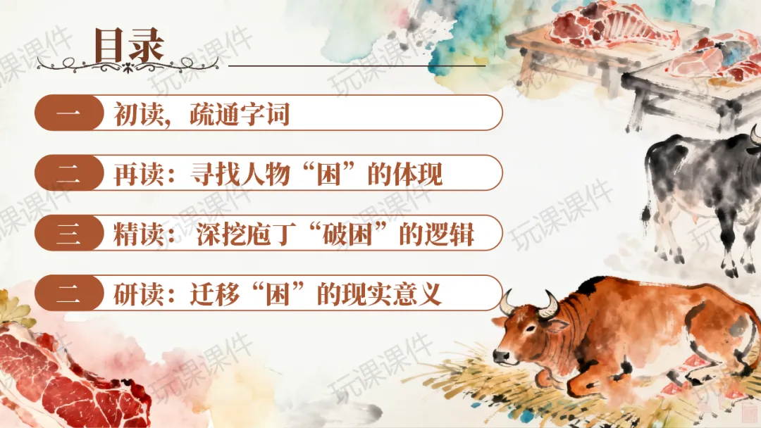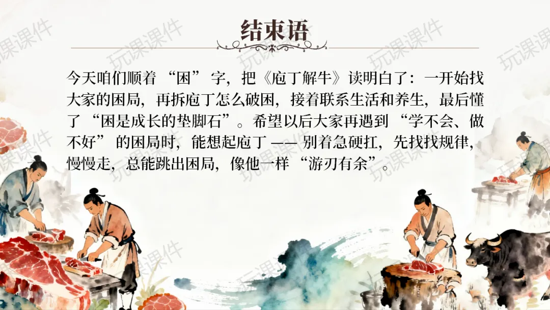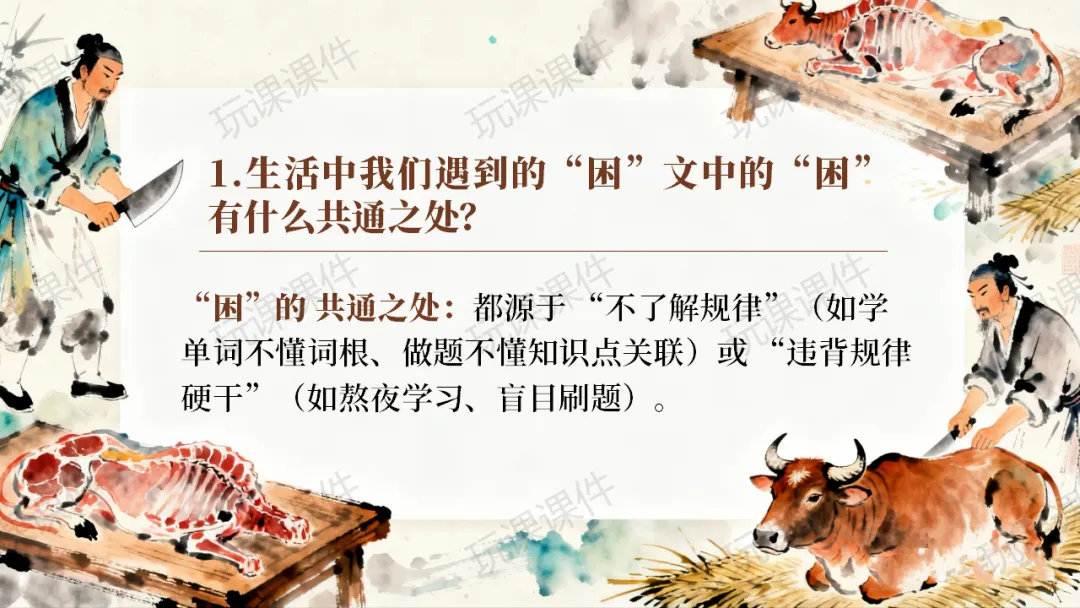 以“困”字为主线设计了一版《庖丁解牛》课件,一字立骨+问题驱动,助力教师呈现高质量公开课课堂 | 玩课