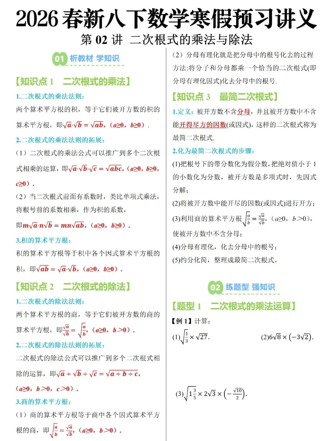 >2026春新八下数学寒假预习讲义,29大核心知识点+80个模型+过关检测,预习稳了!