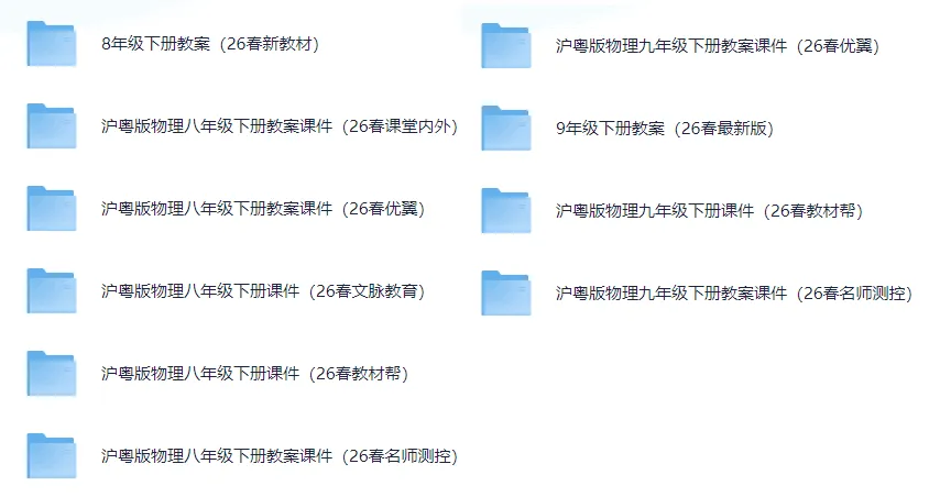 26春沪粤教版物理8-9年级上下册教学资源包里有与新教材配的教案、课件、练习题、教学计划总结、作业课件等。