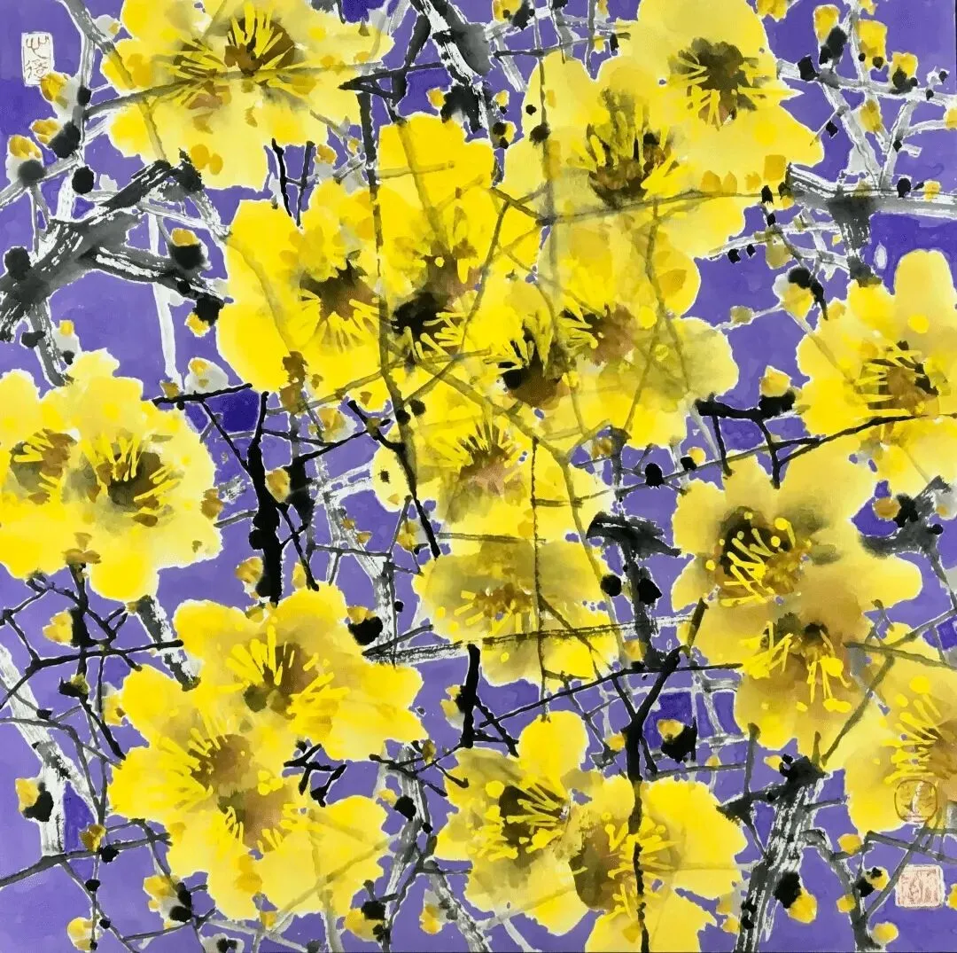 点花朵:换一根棉签蘸黄色颜料,在枝条两侧点出小花。可以边画边念儿歌:“迎春花,迎春花,褐色的枝条把腰弯;迎春花,迎春花开黄花,朵朵张开小嘴巴。”