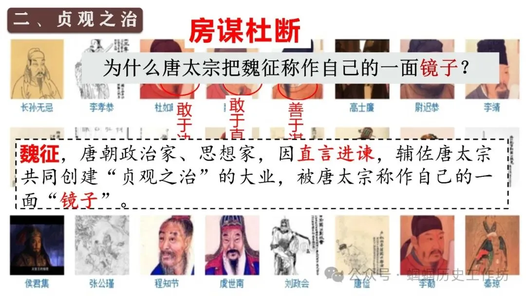 (2)著名宰相:魏征(谏臣)、房玄龄、杜如晦(房谋杜断)