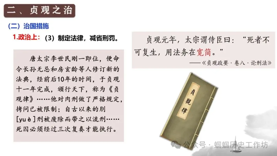①政治上,进一步完善三省六部制;制定法律,减省刑罚;严格考察各级官吏的政绩;