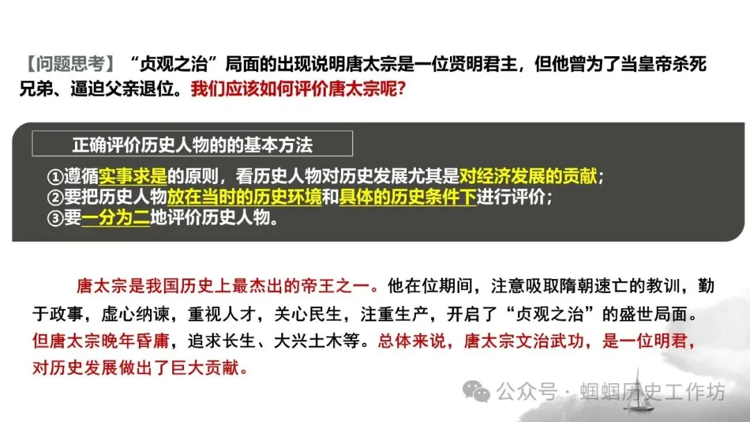 ②知道唐太宗、武则天的治国措施,分析唐朝前期兴盛的原因。(史料实证、唯物史观、历史解释)