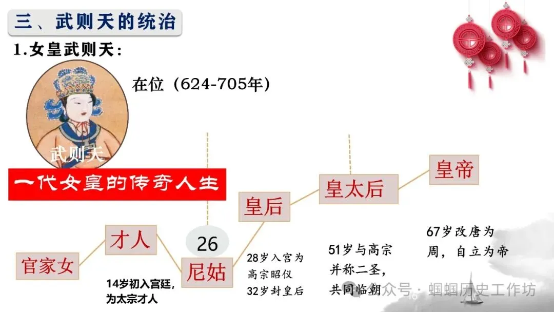 二、女皇武则天(贞观遗风/ 政启开元,治宏贞观)1、地位:中国历史上唯一的女皇帝