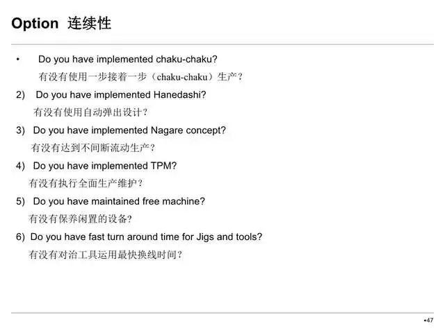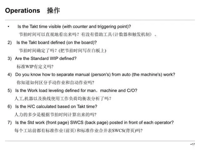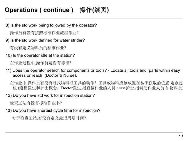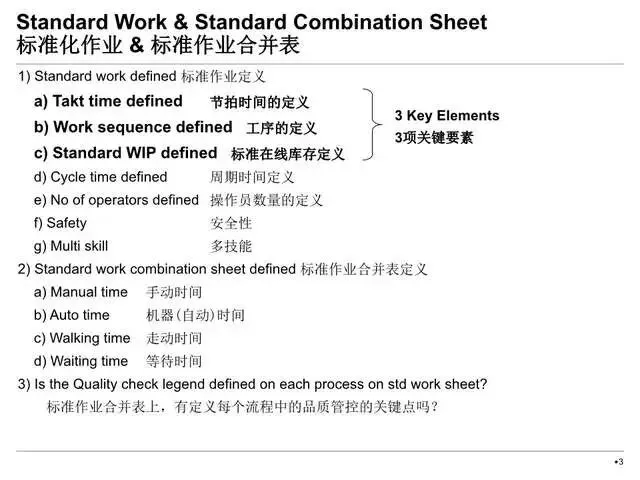 Type 1:Standard Work to support machine (90%)& man (10%)combination task.类型1:标准作业适用于90%的机器作业和10%的手动作业的组合作业方式。