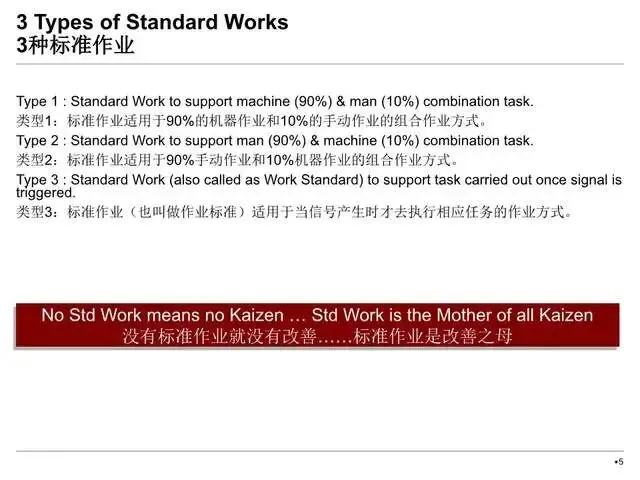 Type2:Standard Work to support man (90%)&machine (10%)combination task.类型2:标准作业适用于90%手动作业和10%机器作业的组合作业方式。