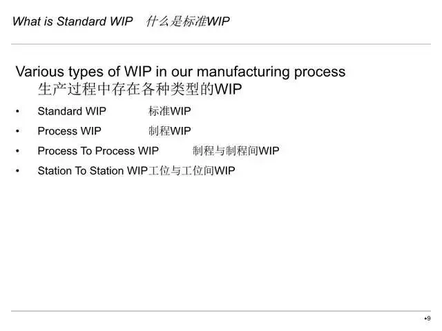 Various types of WIP in our manufacturing process生产过程中存在各种类型的WIP