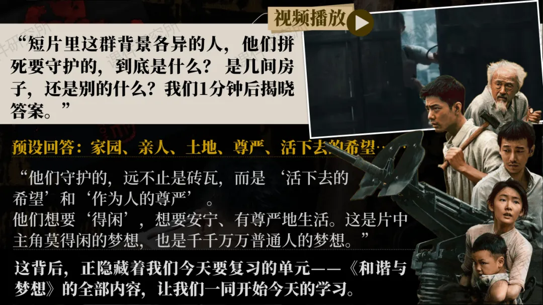 情境化大单元复习!《和谐与梦想》课件透过电影《止戈镇》带动课堂活力~丨自营系列