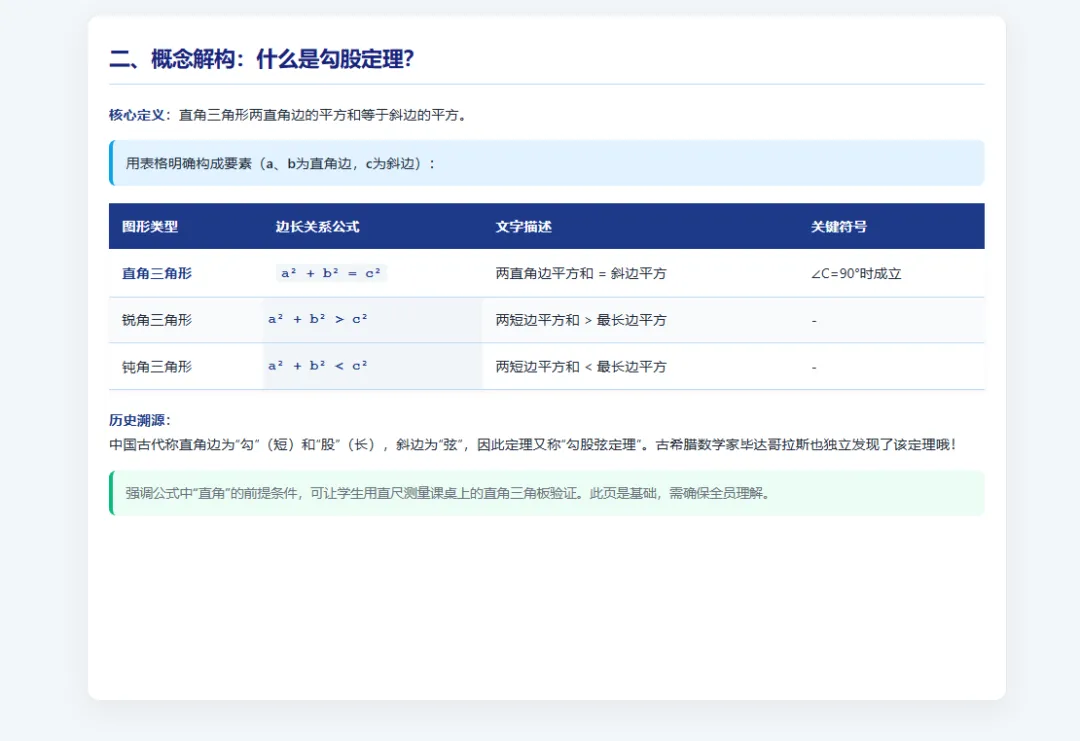 课件生成:大模型基于主题信息,自动生成结构清晰、内容丰富的Markdown格式课件,涵盖重点难点,逻辑层次分明。