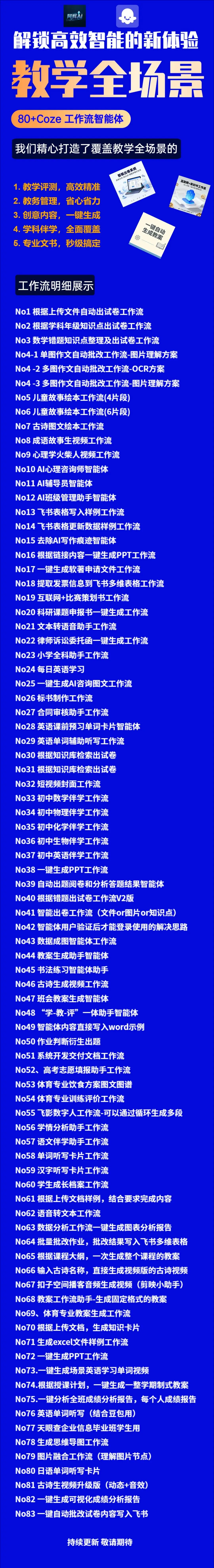 Coze工作流不仅解放了教师的双手,更为知识传播者提供了高效工具。从此,你可以更专注于内容深化与互动设计,让技术处理繁琐的格式与文案工作。