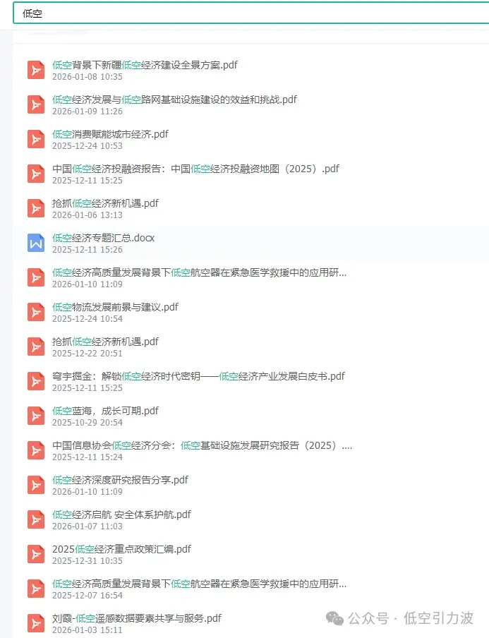 了解到很多朋友对低空经济感兴趣,我们专门创建了低空经济资料库知识星球平台,上面已经上传了上千份的学习资料,各种政策研报,专家课件等等,助力大家在低空经济赛道上游刃有余的成长。大家可以通过资料目录,看看有没有自己需要的学习文件。这是全网低空经济资料最多的平台。