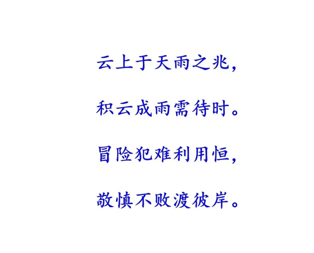 一开始健康时,我们只需保持习惯;稍有不适,用简单方法调理;若病情加重,就要认真治疗;即使面临重病,也要乐观面对。就像我即将参加培训,现在还在准备阶段,不急不躁;随着时间推移,我会逐步接近任务,也会遇到小困难,但只要能“敬慎不败”,保持“饮食宴乐”的心态,就能“利涉大川”。需卦告诉我:多数的担忧其实不会发生,我们要做的,就是在等待中做好准备,在风险中保持从容。