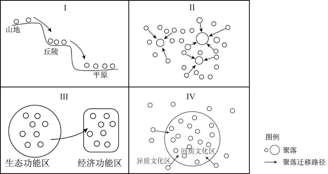 A.更易受经济因素影响B.聚落呈现飞地式迁移