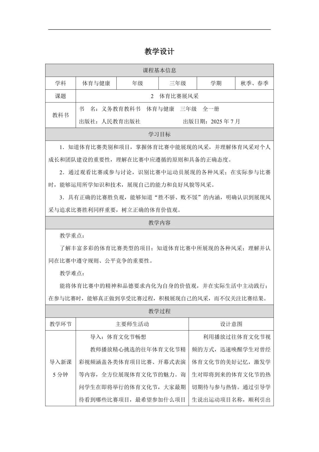 小学体育与健康三年级全一册(人教版)教案+课件+练习,可下载编辑!
