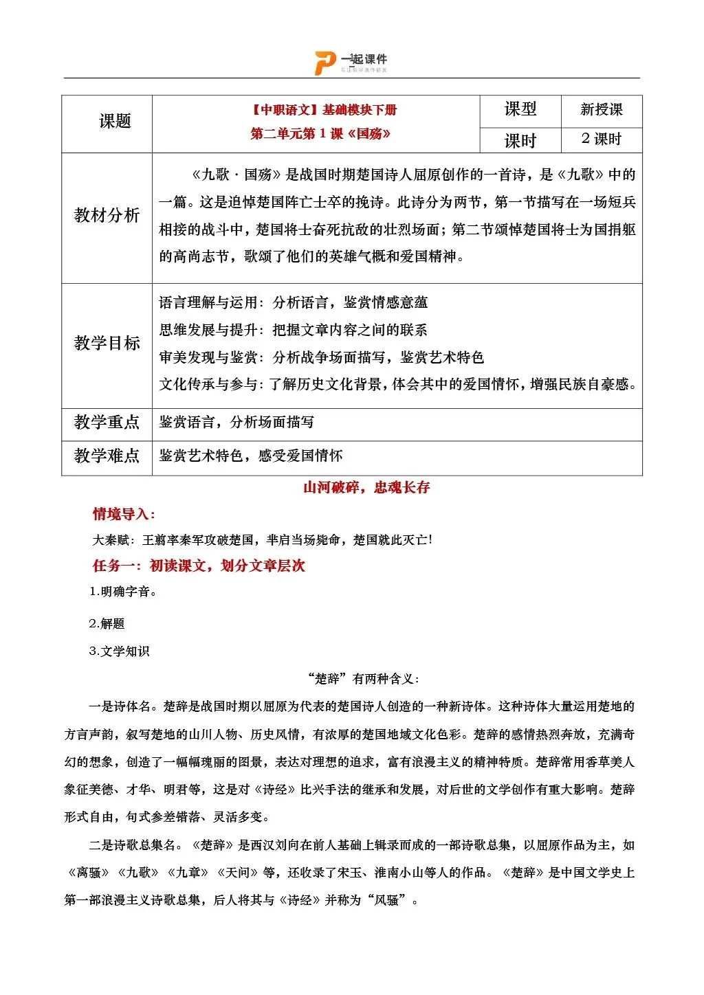 >【中职语文基础模块下】| 《国殇》:课件+教学设计
