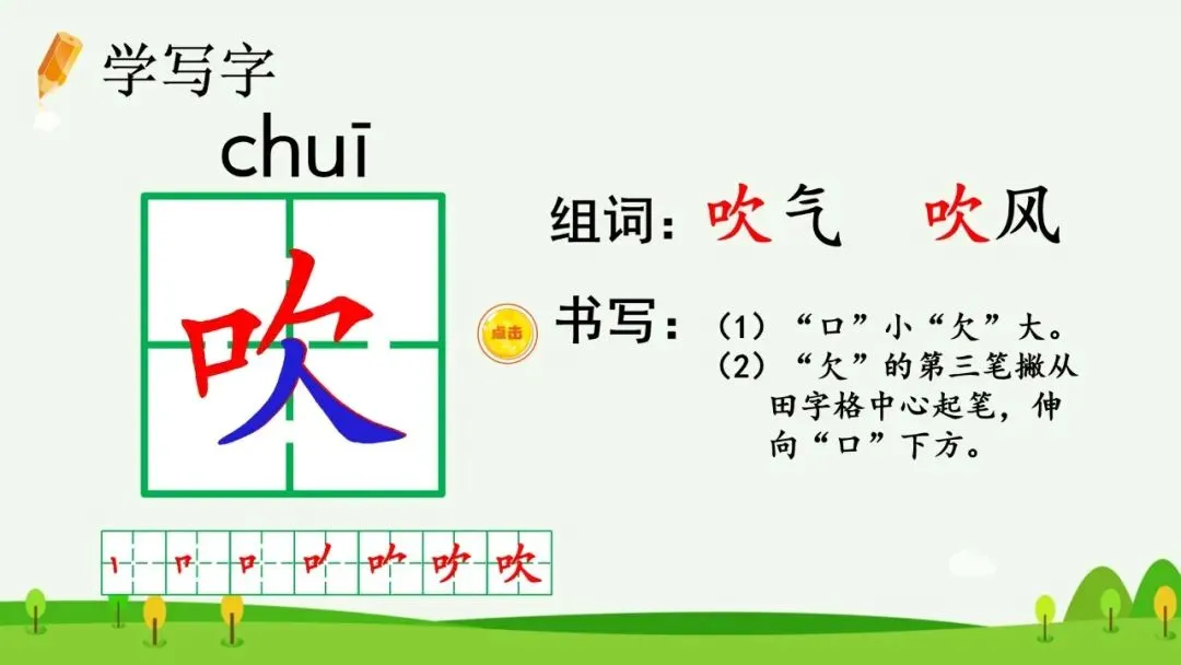 六、指导书写“吹”字(出示课件21)