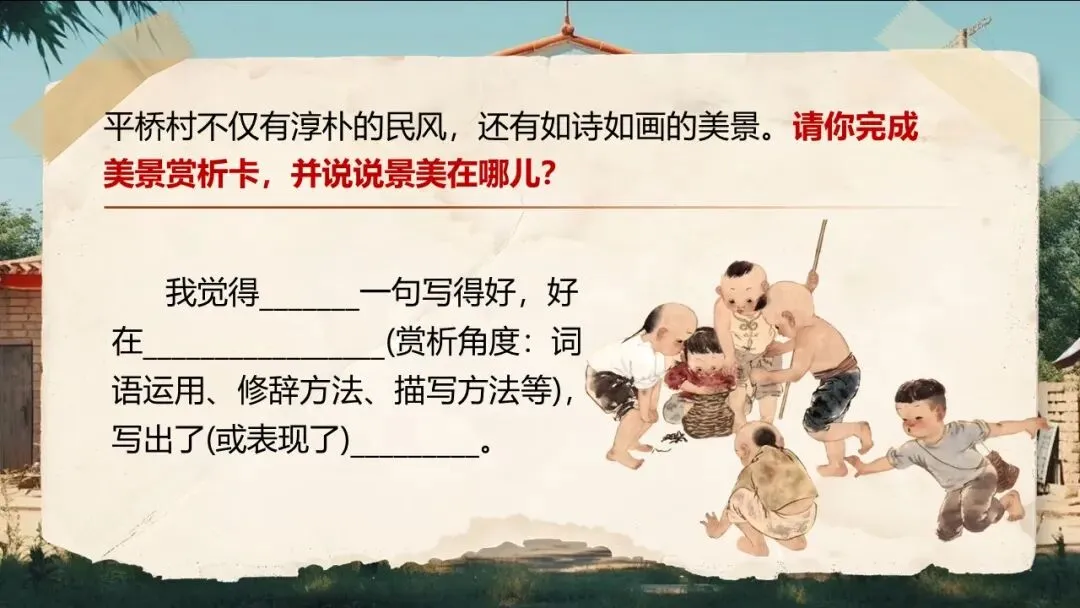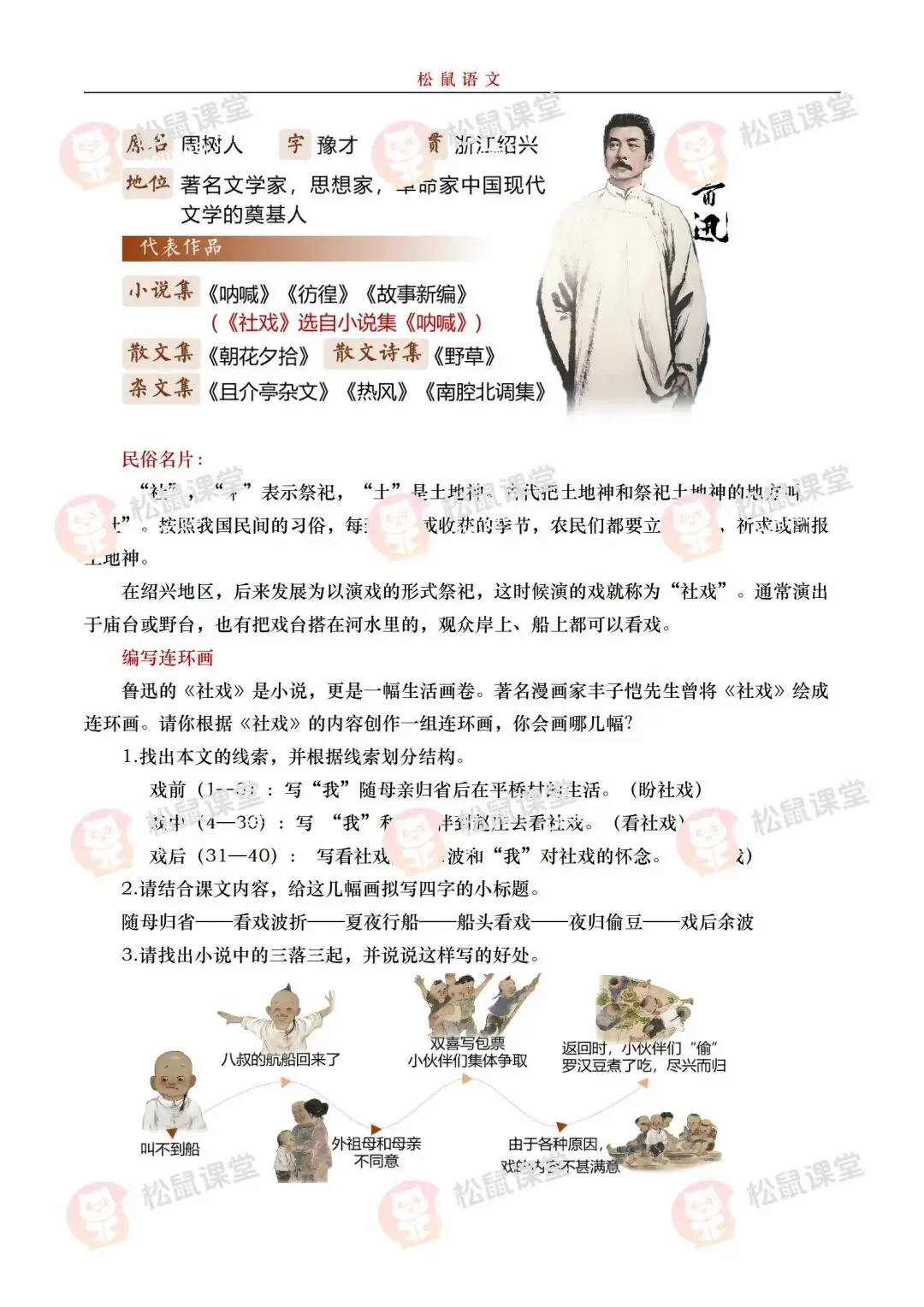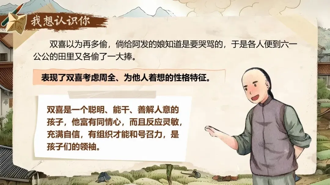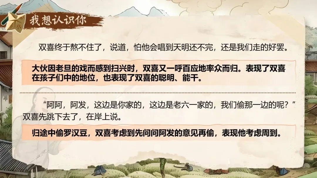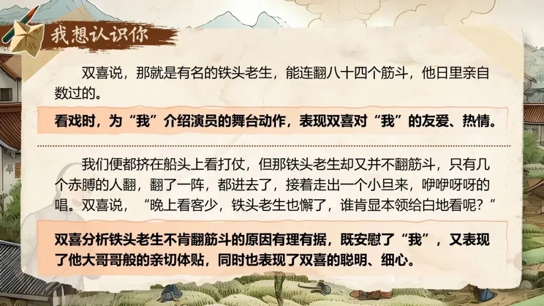 《社戏》通过叙写“我”童年时与农村孩子看社戏的美好往事,刻画了一群栩栩如生的农家孩子形象,表现了劳动人民淳朴善良、友爱无私的美好品质,展示了农村自由天地中充满诗情画意的儿童生活画卷,表达了作者对劳动人民的深厚情感和对童年美好生活的怀念之情。