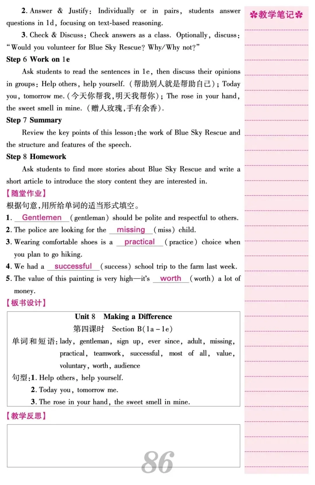 2026新人教版英语八年级下册教案(Unit1-Unit8)含教学反思丨共2套,欢迎转发打印学习,文末还可获取八下英语资料包(含同步课件+单词课件+教案+同步练习+单元检测卷+单词背默表+字帖表+知识点清单+语法精炼+课堂笔记+期中期末卷+寒假讲义等)
