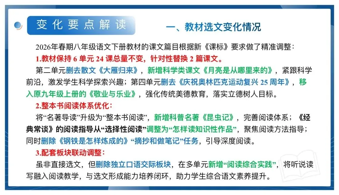八年级下册新教材变化整理汇总及内容解读课件