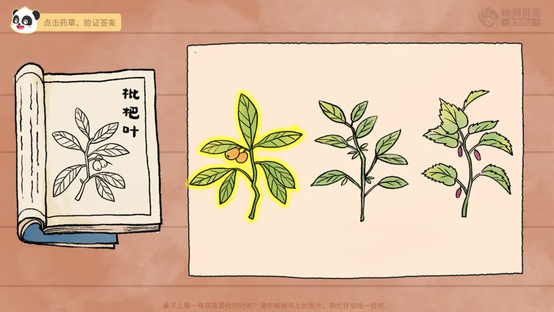 2.播放音频及图片“相似药草”,尝试根据药草图鉴辨别药草,体验辨别相似药草的不易。