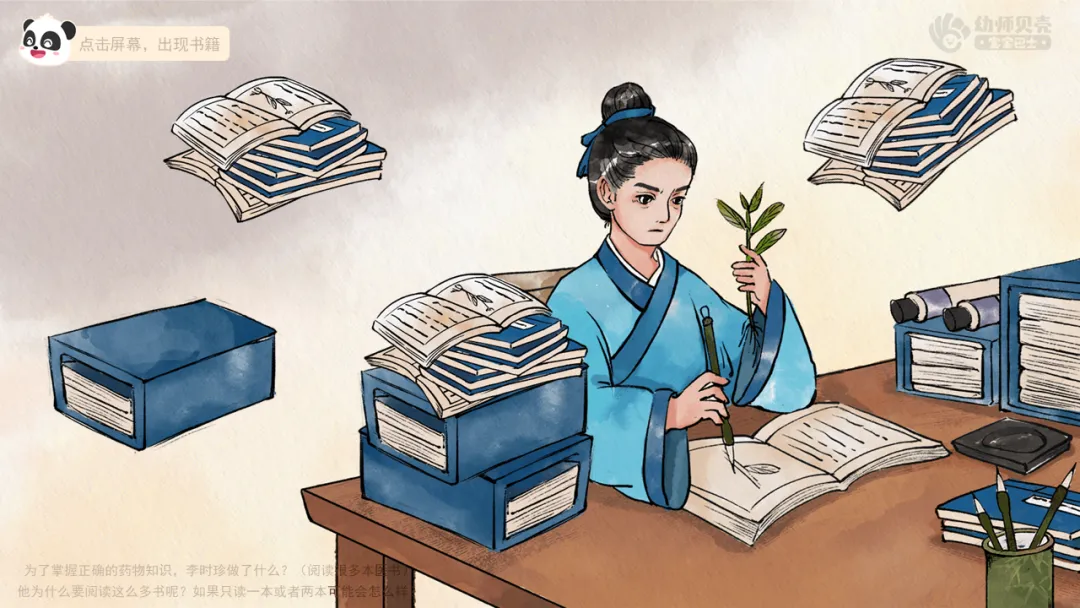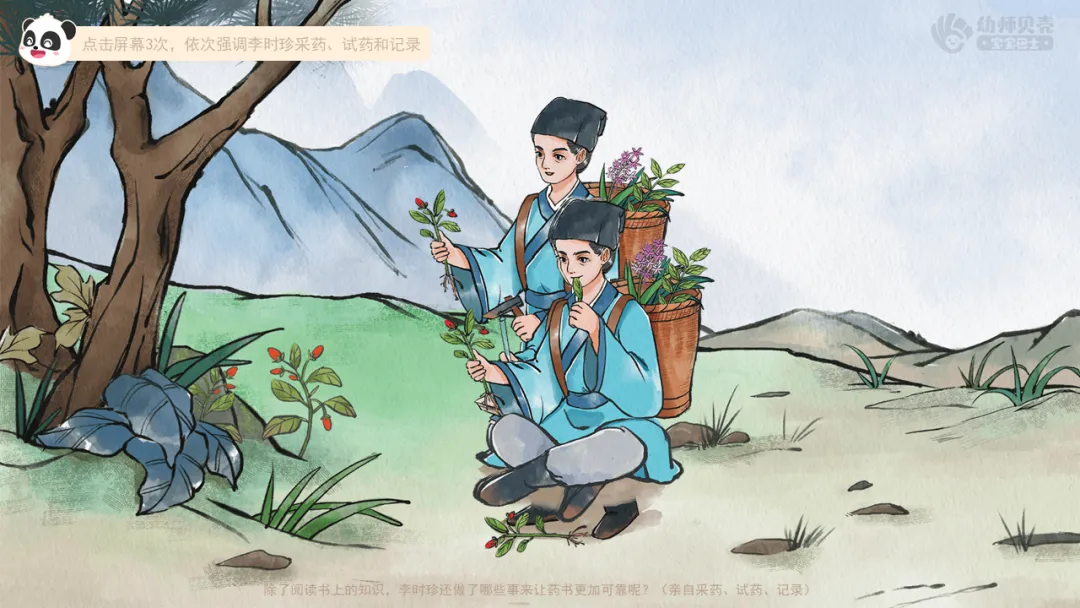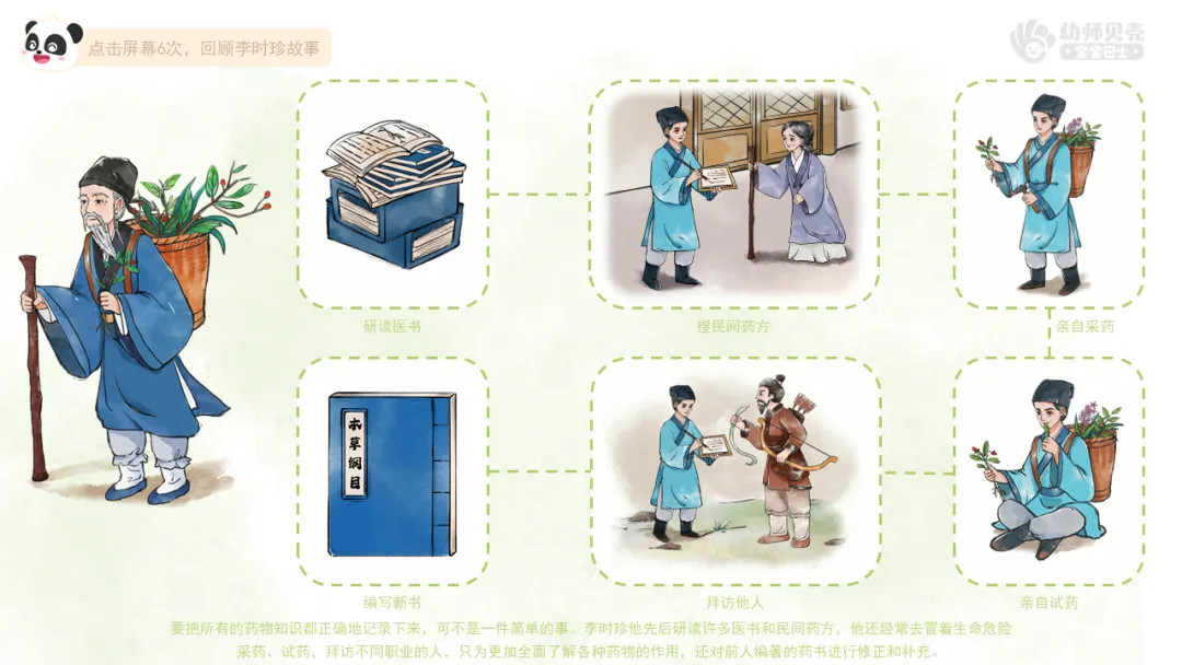 2.播放故事视频《药圣李时珍-2》,引导幼儿了解李时珍详尽搜集药物知识并考证的过程。