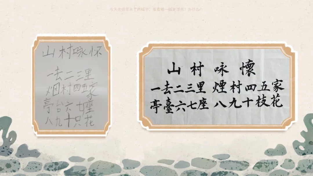 ——今天老师带来了两幅字,看看哪一幅更漂亮?为什么?