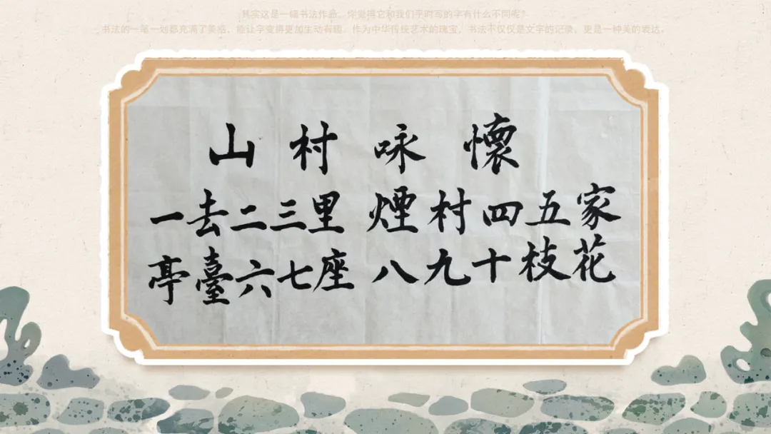 小结:书法的一笔一划都充满了美感,能让字变得更加生动有趣。作为中华传统艺术的瑰宝,书法不仅仅是文字的记录,更是一种美的表达。