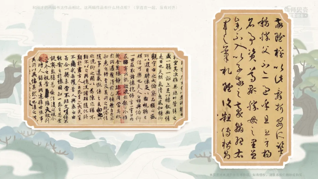 ——和刚才的两幅书法作品相比,这两幅作品有什么特点呢?