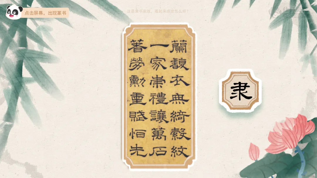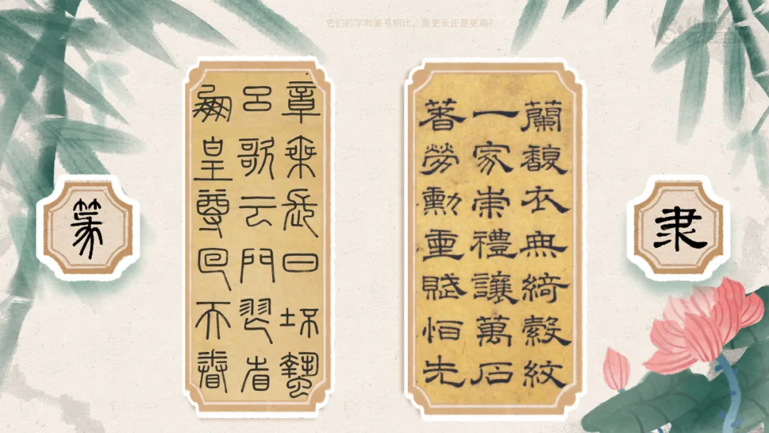 ——这是隶书家族,看起来感觉怎么样?它们的字和篆书相比,是更长还是更扁?
