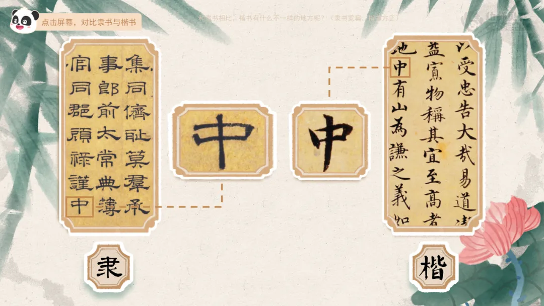 ——和隶书相比,楷书有什么不一样的地方呢?(隶书宽扁,楷书方正)