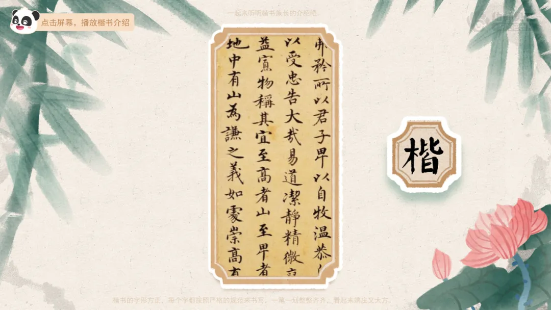 小结:楷书的字形方正,每个字都按照严格的规范来书写,一笔一划整整齐齐,看起来端庄又大方。