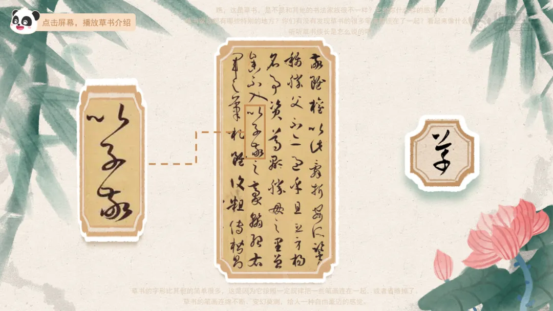 ——瞧,这是草书,是不是和其他的书法家族很不一样?它给你什么样的感觉呢?