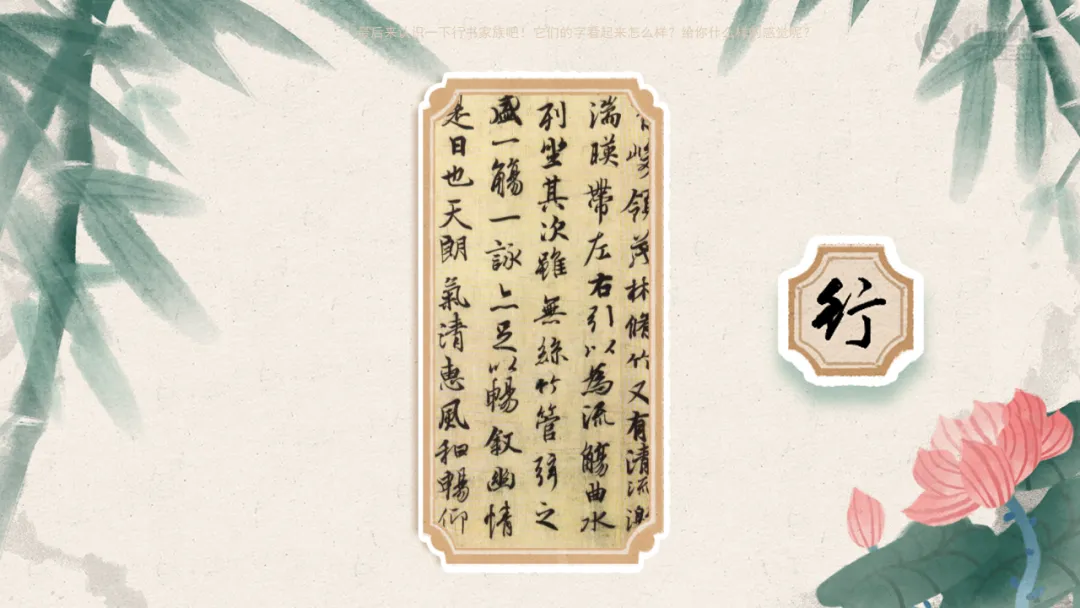 ——最后来认识一下行书家族吧!它们的字看起来怎么样?给你什么样的感觉呢?