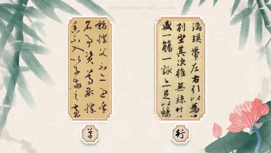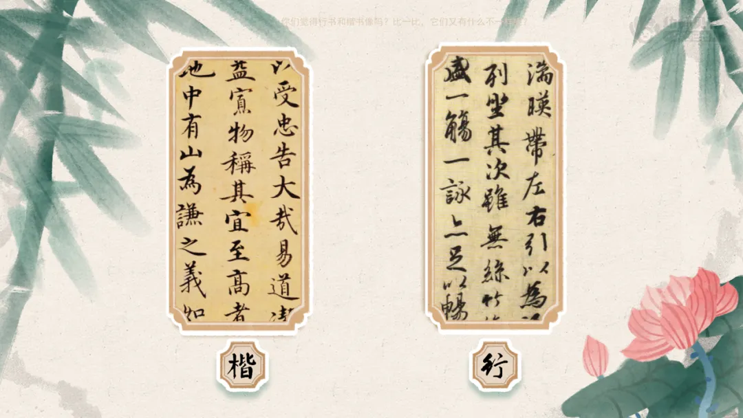——你们觉得行书和楷书像吗?比一比,它们又有什么不一样呢?