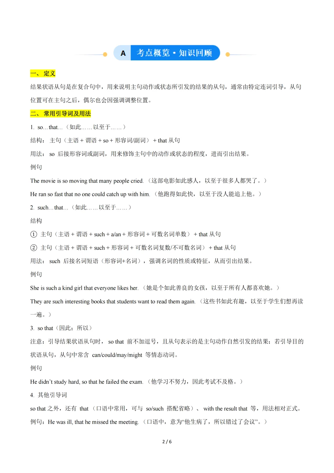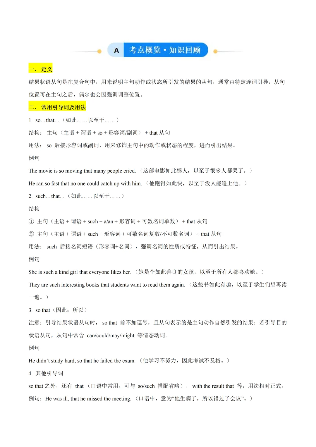下学期预习讲义 | 八年级英语 | Unit 1 Art and artists 结果状语从句(单元核心语法精练)(原卷版)
