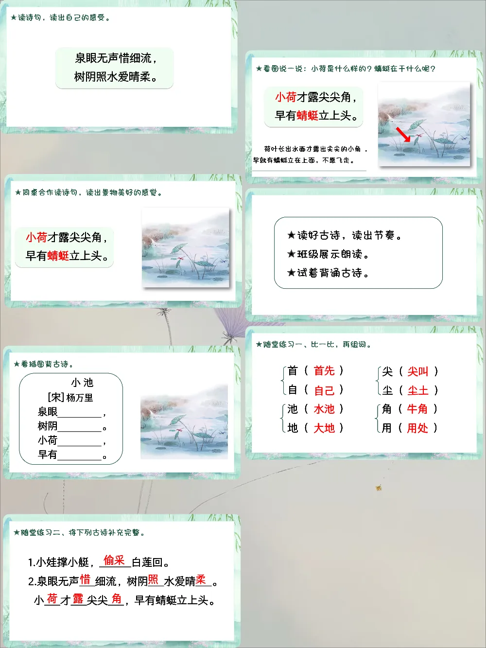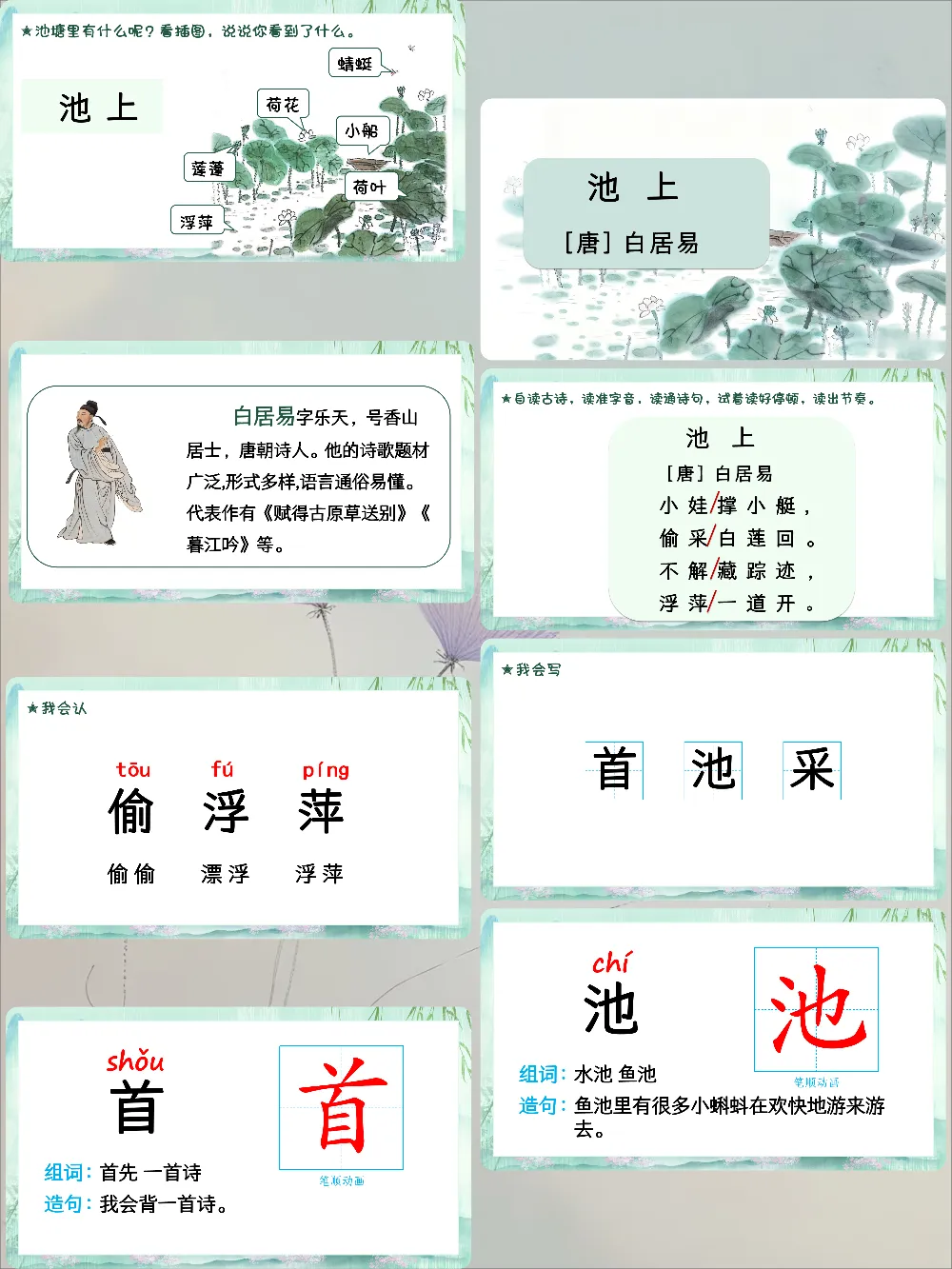 一下《古诗二首:池上、小池》课件来了