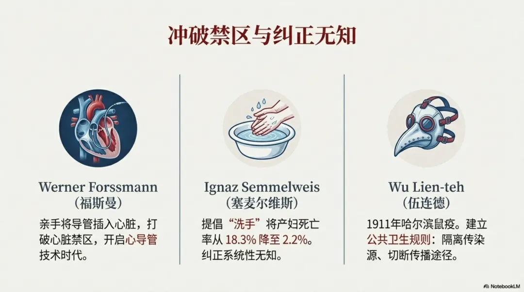 2)改变医学的大医生有哪些?实践为什么是医学的核心理念?医疗禁区是如何一个个被打破的?如何纠正无知之错?避免无力之错,降低误诊、错诊?人类如何通过公共卫生战胜大规模传染病?