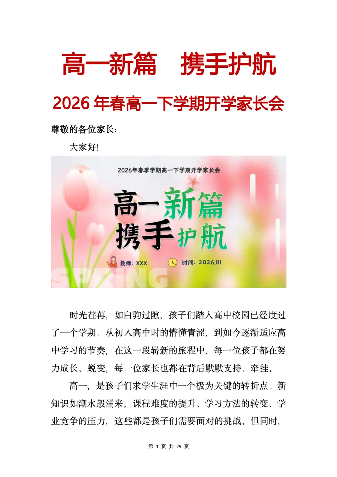 >2026年春季学期高一下学期开学家长会课件讲稿|高一新篇 携手启航