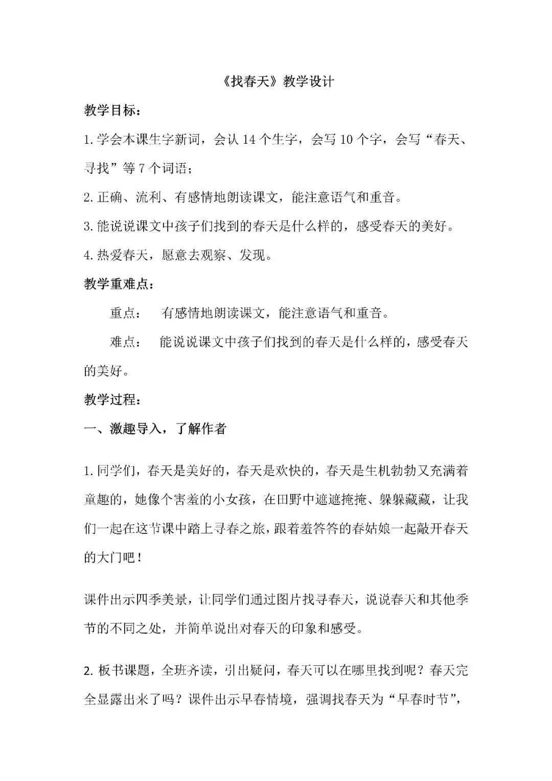 二下第一单元《找春天》 | 教学课件+教案+逐字稿